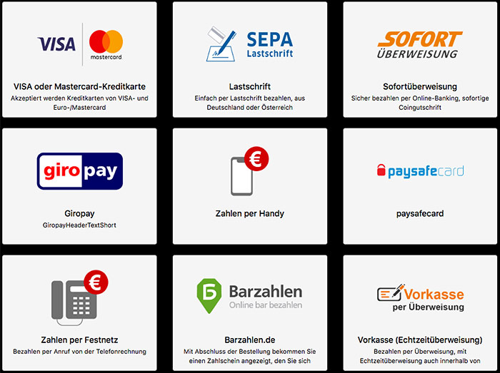 Folgende Bezahlmethoden werden auf Livestrip akzeptiert: